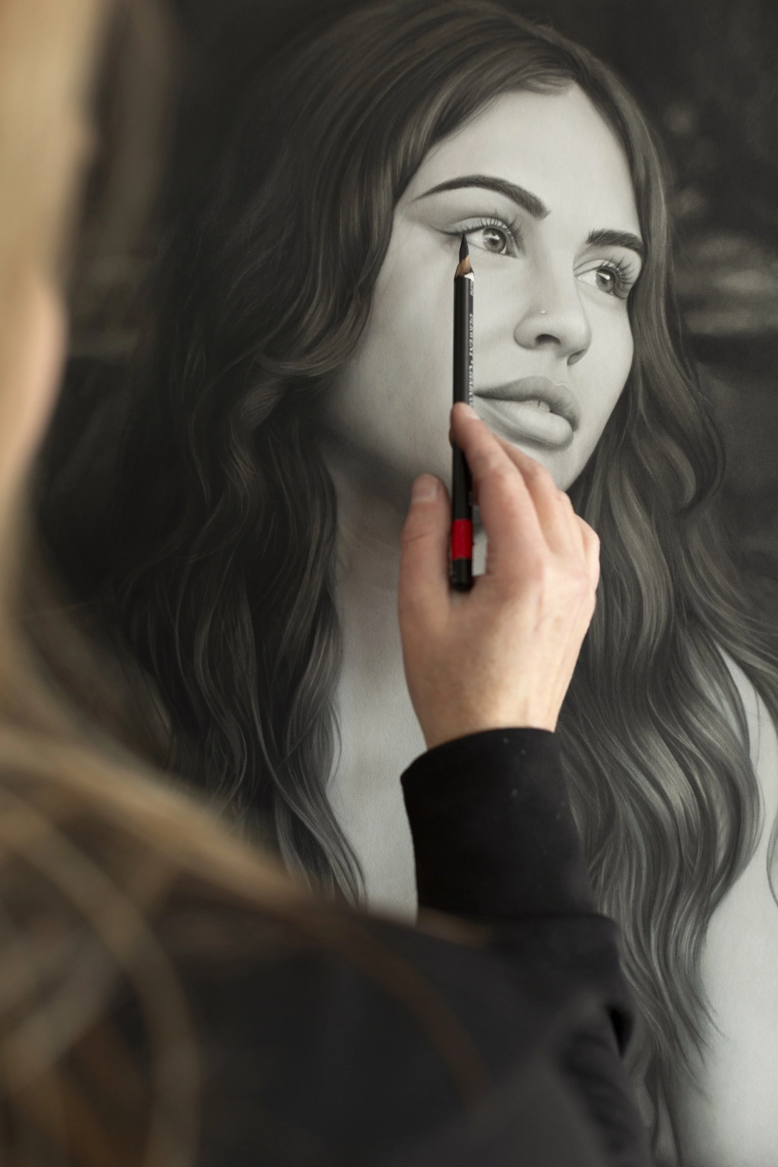 Sara Gallagher is an internationally award-winning artist working to help break social taboos surrounding mental health. Utilizing a mixed-media graphite and PanPastel technique that she developed, her hyperrealistic drawings create a soft, ethereal, and subtly surreal space in which our innermost emotions can exist on the surface.